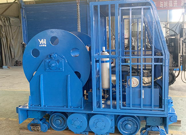 我公司自主创新定制无极绳连续牵引车,可以实现大坡度、长距离巷道条件下的大型设备直达运输,可以解决小绞车对拉接力问题。